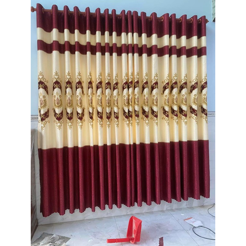 Rèm vải gấm thêu màu đỏ, mướt mịn cao cấp loại 1 nhiều kích thước dùng cho cửa chính, cửa sổ hoặc ngăn phòng.