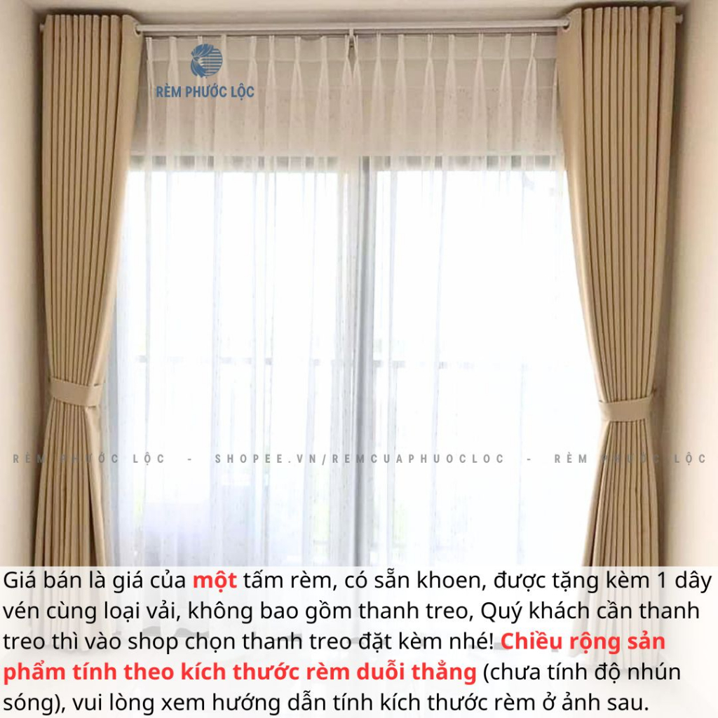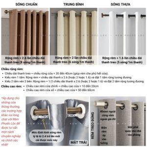 ➢ Sản phẩm là 1 tấm rèm được may hoàn thiện theo kiểu khoen ore, với kích thước duỗi phẳng (chưa tính nhún sóng). Vui lòng xem hướng dẫn tính kích thước rèm trên phần hình ảnh sản phẩm.