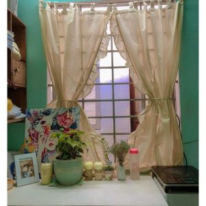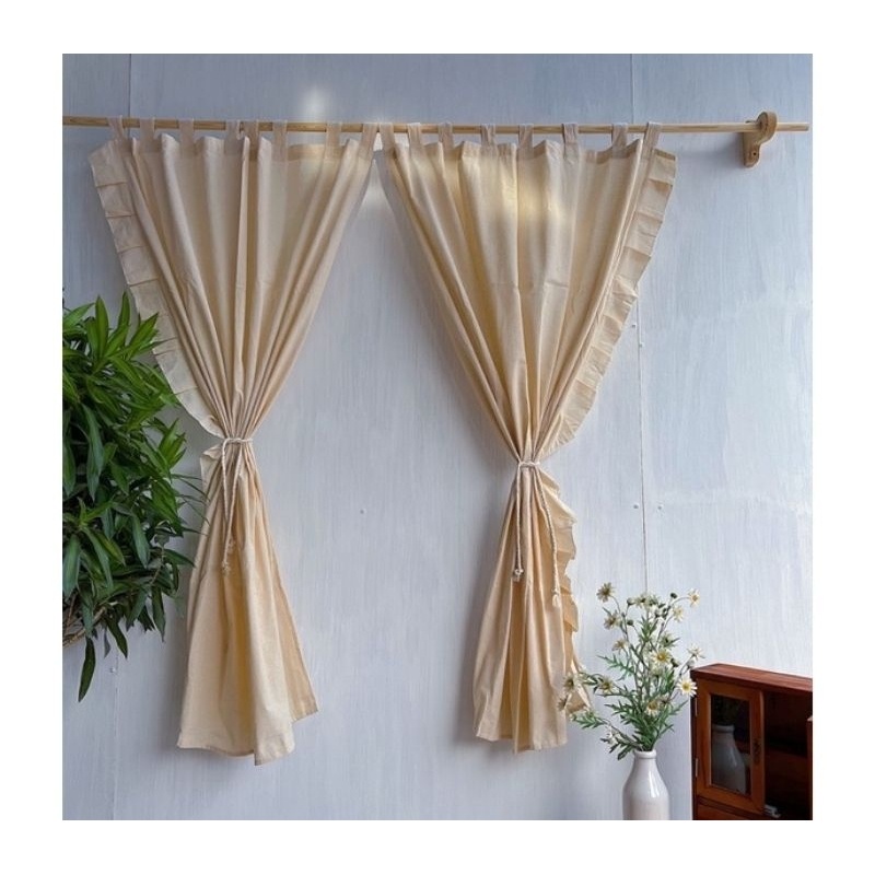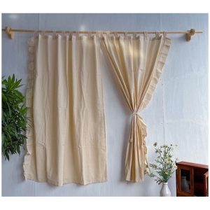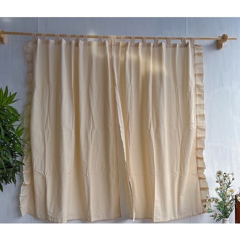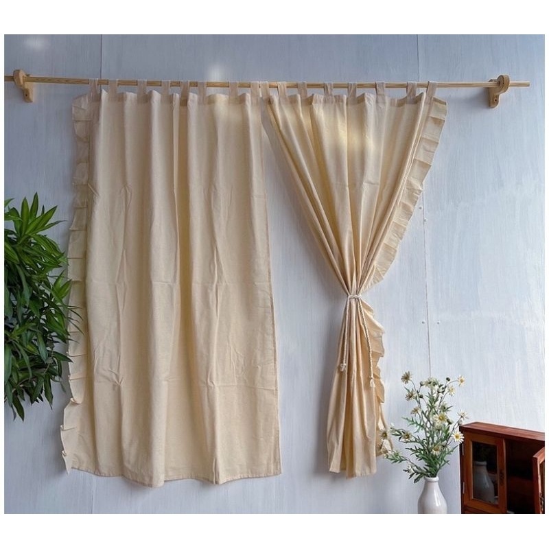 Rèm Màn Vải Canvas Thô Mộc Có Bèo Nhún Phong Cách Vintage