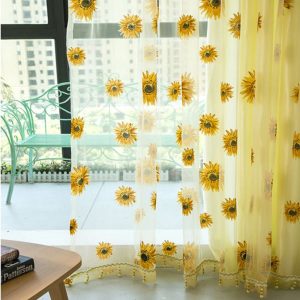 YIYU Rèm cửa sổ vải voan họa tiết hoa hướng dương 1 cái
